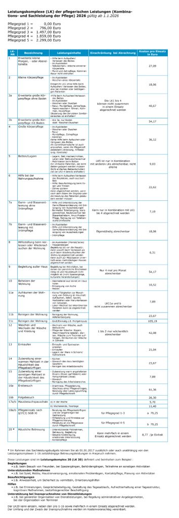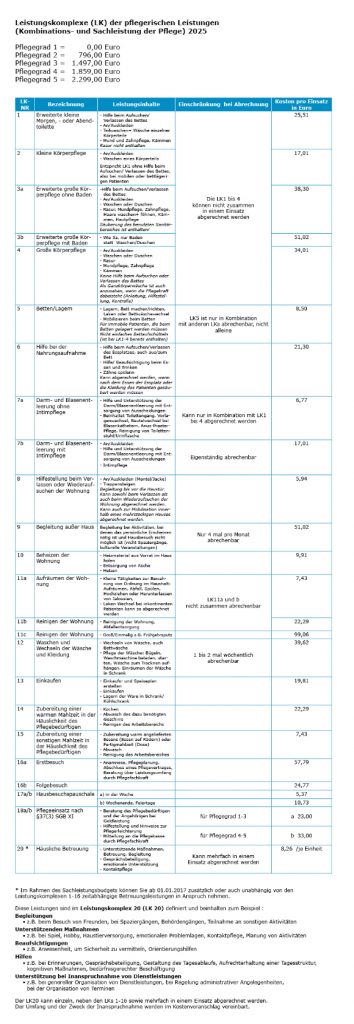 - Sachleistungen nach dem Pflegeversicherungsgesetz in allen Pflegegraden